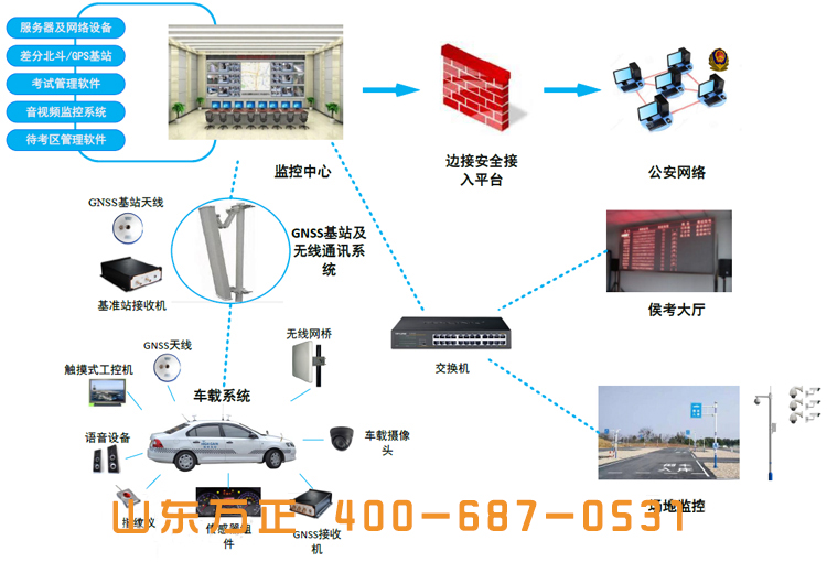 驾驶人考试系统场考部分主要由车载信息采集终端、主机以及音视频采集及存储设备组成。