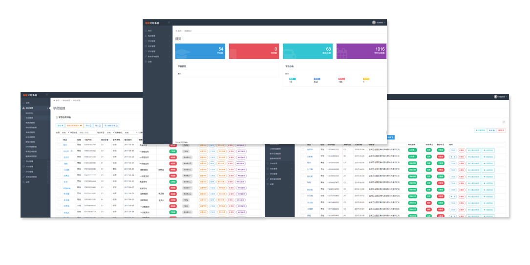 哈哈智能培训计时管理平台界面简洁、功能清晰。左侧为驾校管理、学时管理、约车管理、评价管理、财务报表管理、设置七大版块,涵盖了驾校学员培训和驾校管理的各个环节,并符合国交数据对接要求。